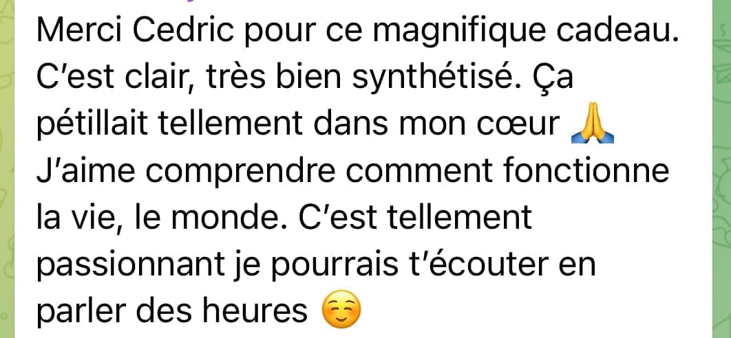 Non pas de tes croyances, non pas de ton histoire, non pas de tes peurs. Mais plein de l’essentiel. Plein de présence.